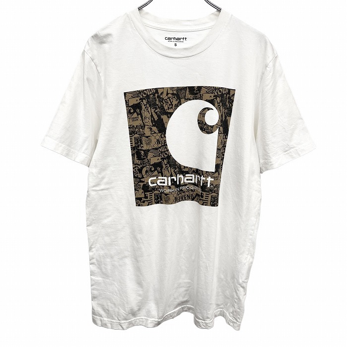 - カーハート Carhartt Tシャツ ロゴプリント 丸首 半袖 プルオーバー カットソー 綿100% コットン100% S ホワイト 白×茶×黒 メンズ