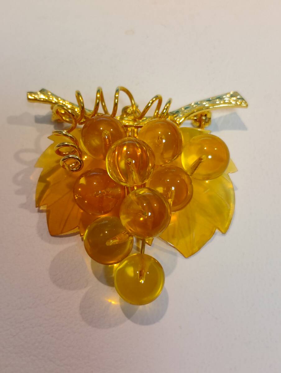 - べっ甲細工ブドウ状ブローチ・べっ甲薄つくりの葉っぱ
