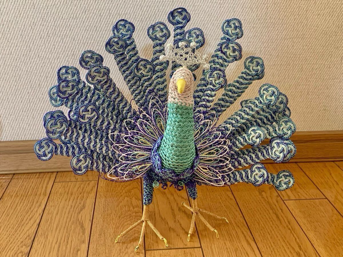 - 孔雀 クジャク 水引アート ハンドメイド 置物 縁起物 水引細工 アート作品 鳥 オブジェ 水引 フィギュア