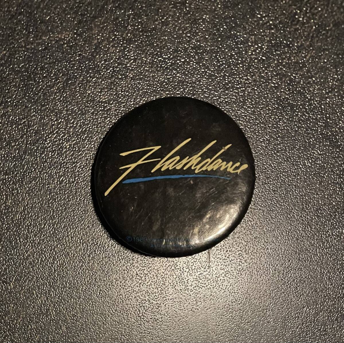 - C)1983年80sビンテージFlashdanceバッジ黒ピンズ希少タイトル当時物83年オフィシャル映画フラッシュダンス洋画ムービー物80年代オールド