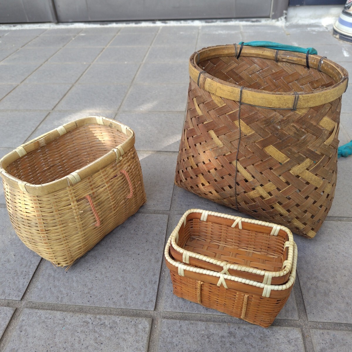 - 竹ビク2個 餌箱1個 3個で!! 手編み (中古)