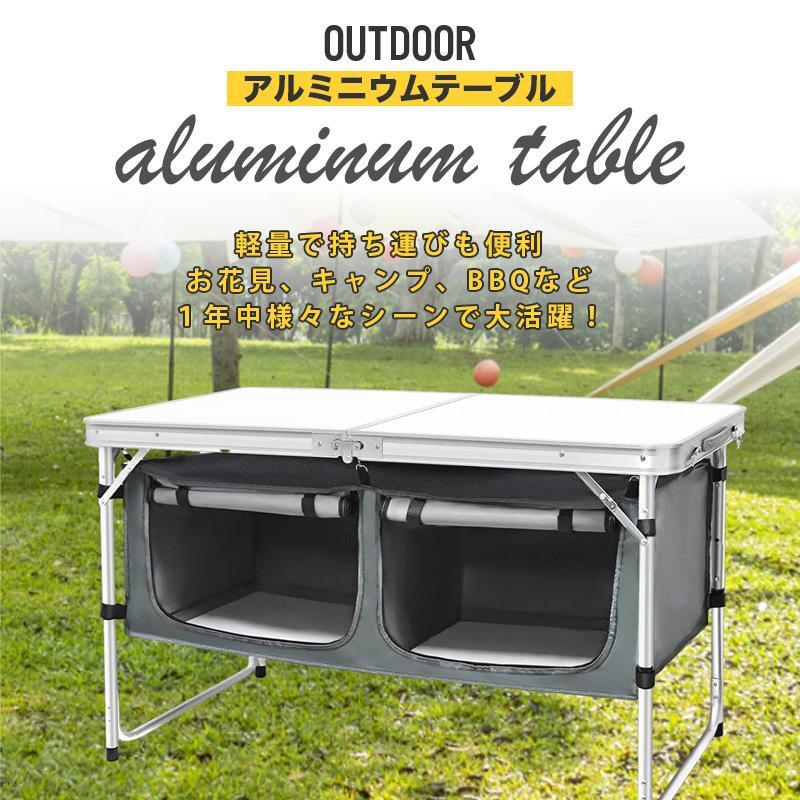 - 5台限定‐2024最新アウトドアテーブル 折りたたみ 120cm 収納付き 高さ3段階調節 防水 ローテーブル アルミ レジャーテーブル 庭キャンプ