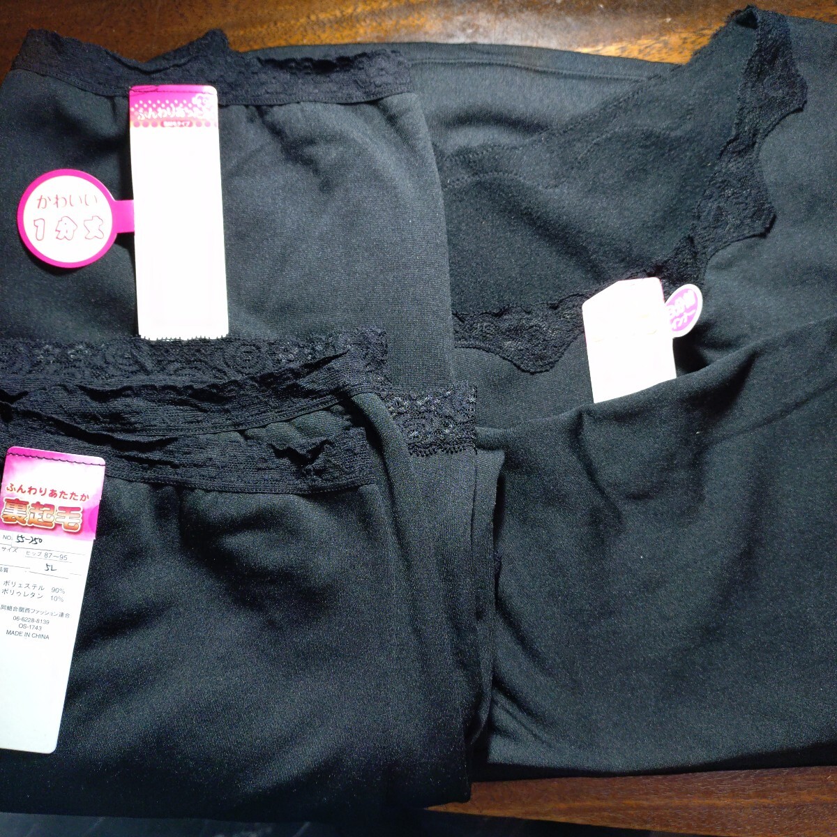 - 婦人肌着 5Lサイズ(サンプル) 裏起毛 8分袖シャツ 1分丈パンツ 5分丈パンツの3点セット ポリエステル90%ポリウレタン10%