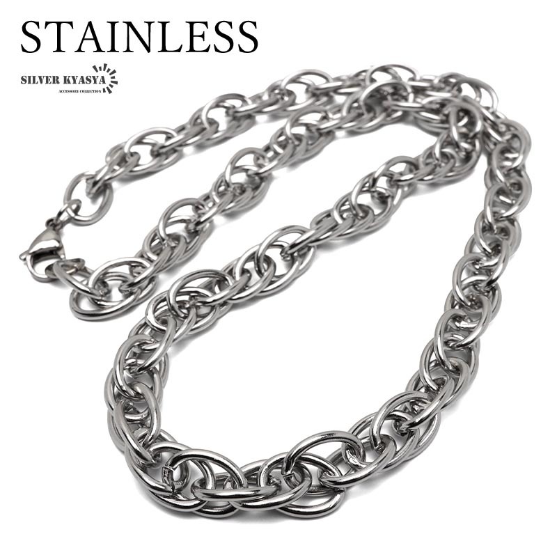 - (60cm) ステンレス ロープチェーンネックレス 太幅 ツイストチェーンネックレス シルバー メンズ 男性 金アレ対応
