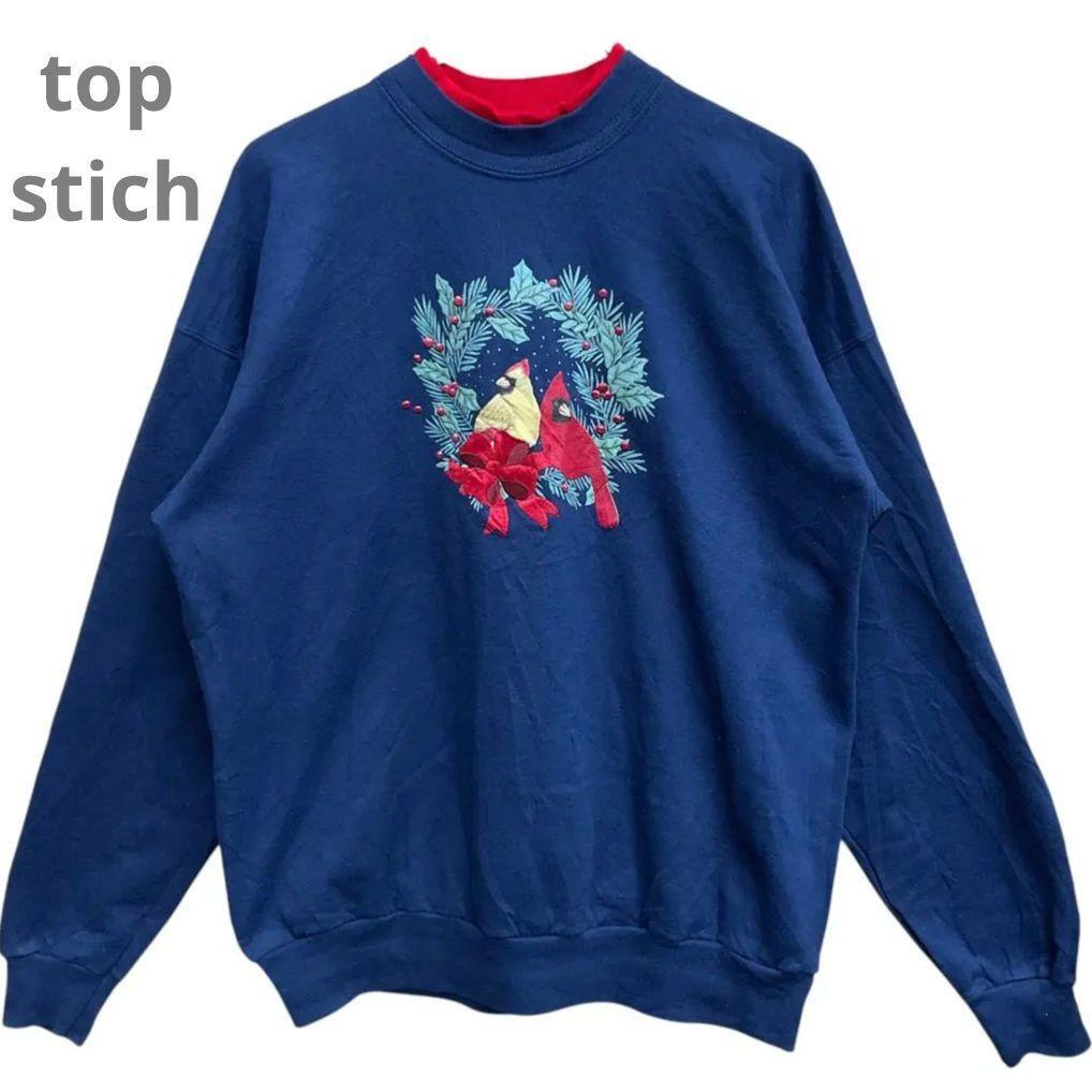 - トップスティッチ レディーススウェット トレーナー 紺 L レトロ【1250】