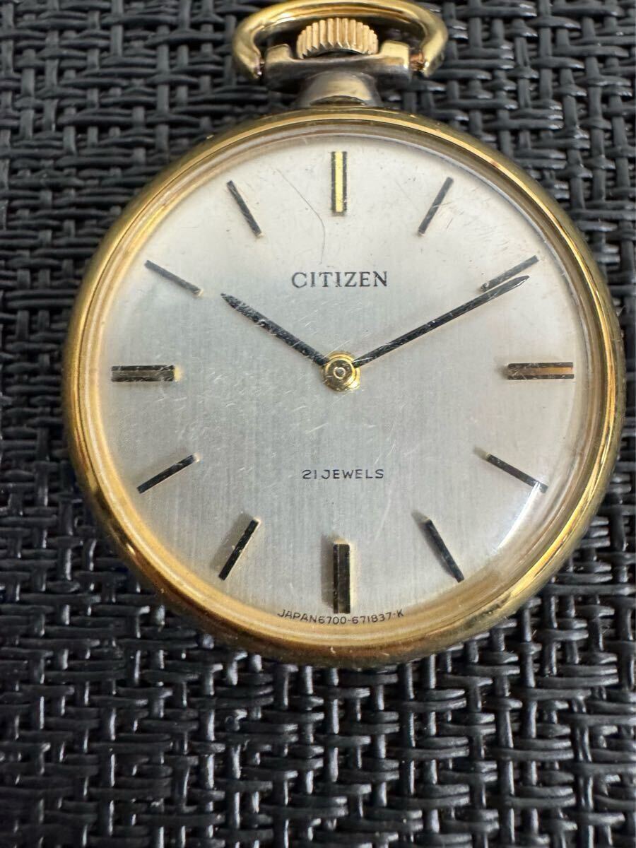 - CITIZEN シチズン 懐中時計 ヴィンテージ 21石 金象嵌 花 彫金 手巻き レディース 稼働品 D-212
