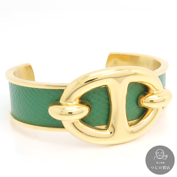 - HERMES シェーヌダンクル GP レザー バングル ブレスレット 緑 グリーン 質屋