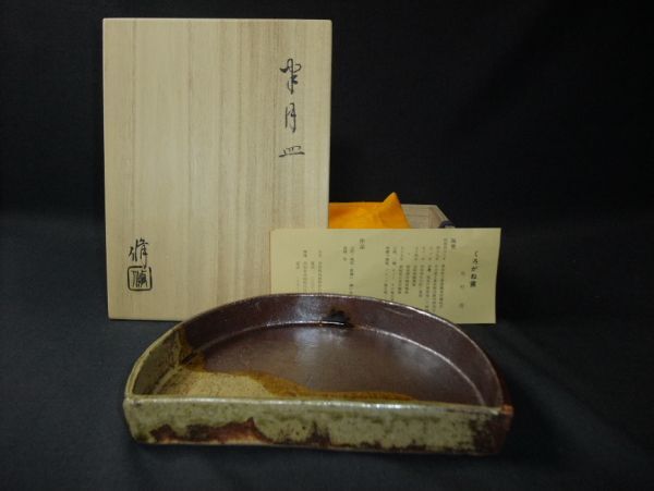 - 【睦】半月皿 竹内 脩 くろがね窯 茶道具 未使用 共布 共箱■
