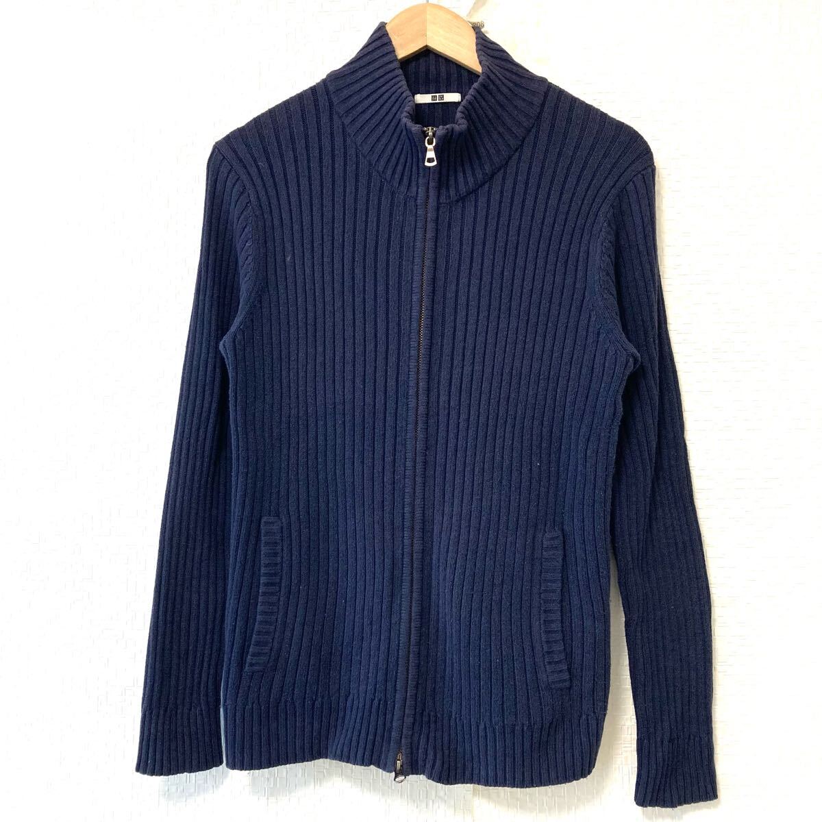 - 【UNIQLO】ユニクロ ウォッシャブル ジップアップ ニット セーター ハイネック 秋冬 シンプル カジュアル ネイビー メンズ M/Y25838UU