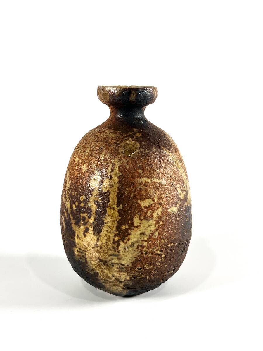 - 【送料無料・蔵出し・名人作】黒備前窯変徳利 古色徳利 【昭】在銘 茶道具 酒器