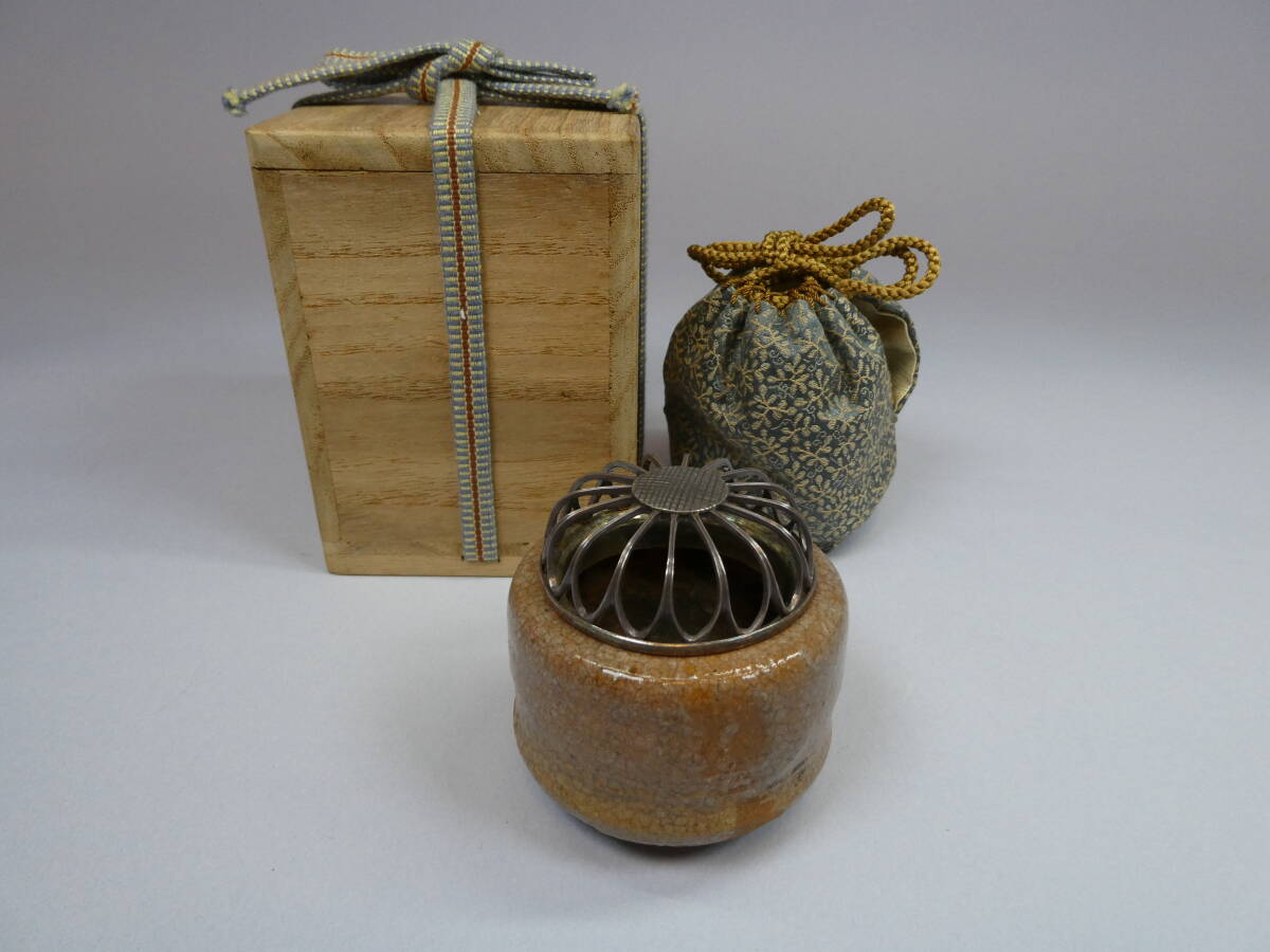 - 越中瀬戸焼 香炉 純銀火舎付(刻印) 時代物
