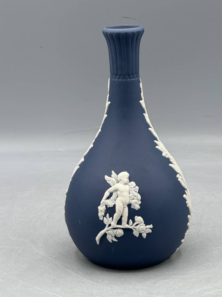 > ウェッジウッド ジャスパー 紺 ネイビーブルー 一輪挿し 花瓶 フラワーベース ジャスパーウェア (777)