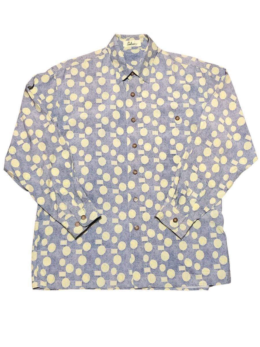 - 【90s】tanbow 長袖シャツ 柄シャツ シルク100%(絹) Mサイズ 青系
