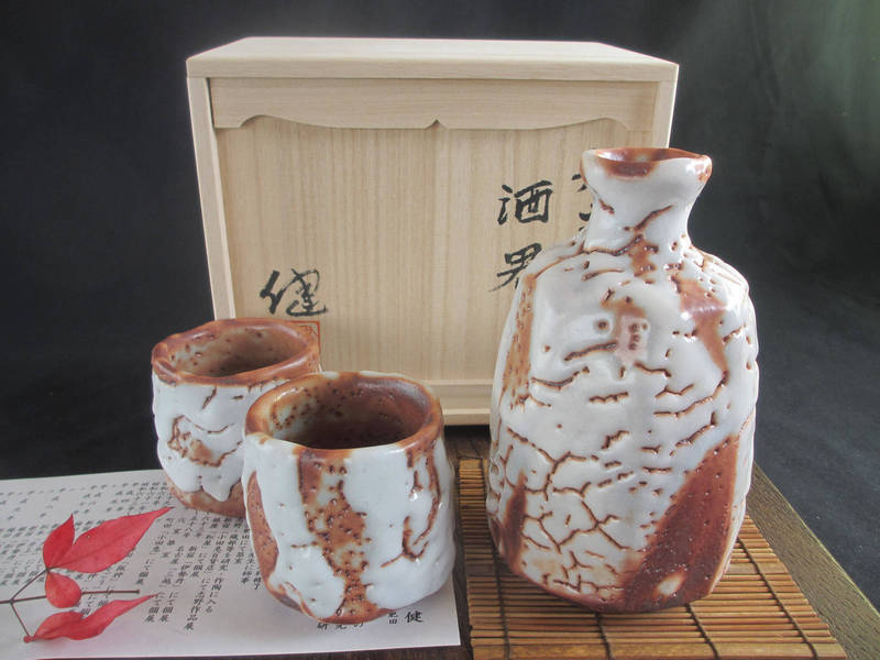 - 酒器 赤志野 波紋 酒器揃(桐箱入) 源九郎窯 加藤健作 KA-256