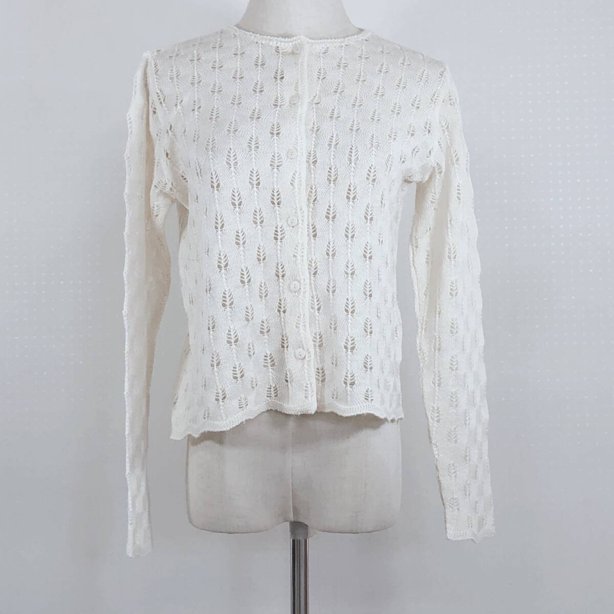 - YX937 レディース トップス カーディガン 長袖 2つ穴ボタン 伸縮性 編み地 薄手 ベージュ 葉っぱ模様 麻 おしゃれ キュート シンプル 春秋