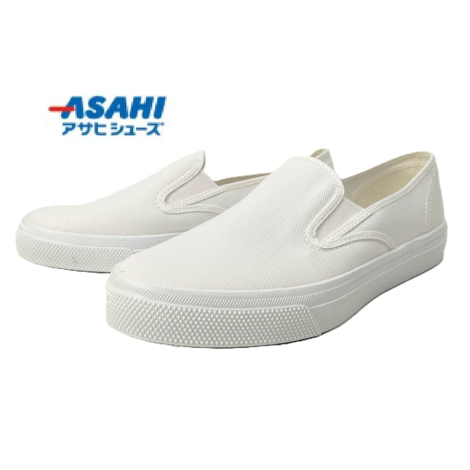 - 新品即決 送料無料 24.0cm アサヒシューズ スニーカー 2E デッキシューズ シンプル スリッポン ホワイト 日本製 らくちん カジュアル