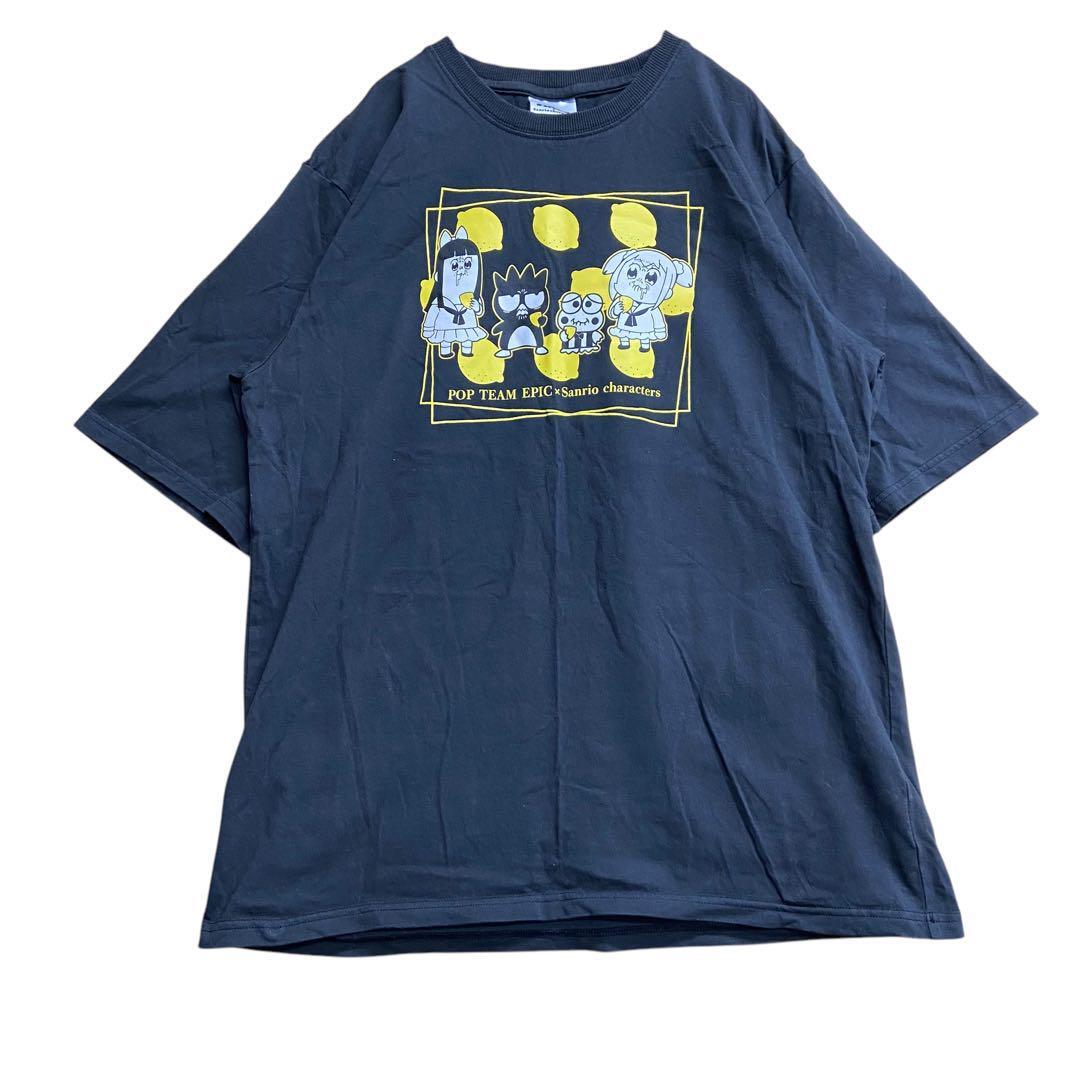 - ポプテピピック × サンリオキャラクターズ メンズTシャツ 黒 M【2386】
