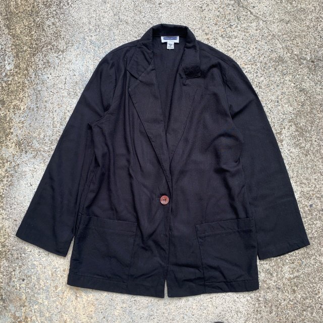 > 【S/M】SAG HARBOR ポリエステル×レーヨン テーラードジャケット 黒■ビンテージ オールド レトロ アメリカ古着 80s レディース