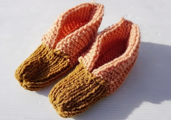 - ◆ キッズ 子供服 ハンドメイド ニット ルームシューズ 21㎝ カギ編み 茶×ピンク/ビンテージ オールド アメリカ古着 ウール レトロ 靴下