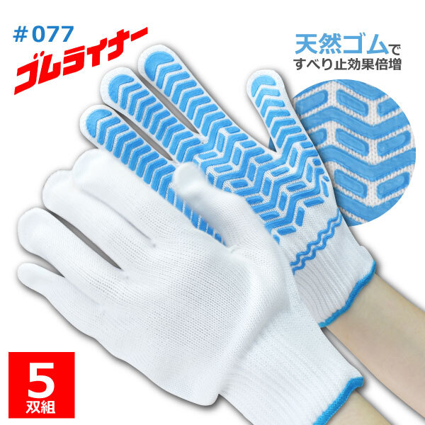 - 勝星産業(カチボシ)【#077】 ゴムライナー 天然ゴム滑り止手袋 5双組パック ■Mサイズ■ 白 ≪※ネコポス(ポスト投函)1組まで可≫