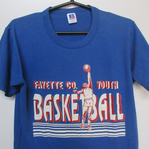 - 80年代 アメリカ製 Tシャツ SM 青 バスケットボール ラッセル アメカジ古着 sy3181