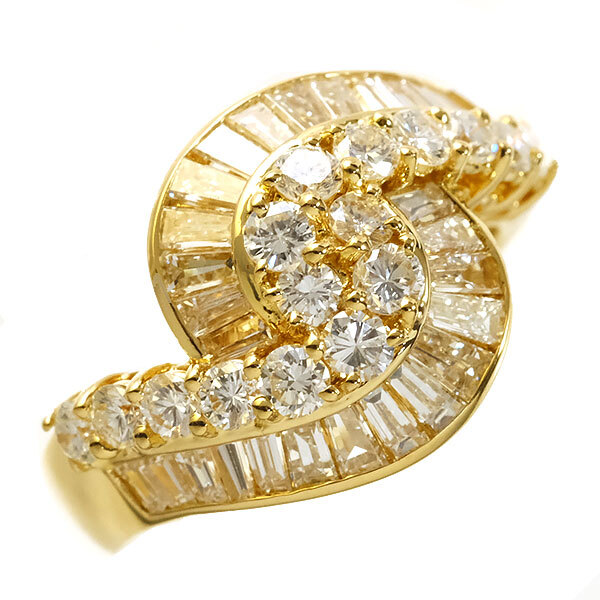 - 送料無料 本物 ダイヤモンドリング K18YG イエローゴールド ダイヤ1.23ct 0.82ct 12号 仕上げ済み レディース 高級 おしゃれ