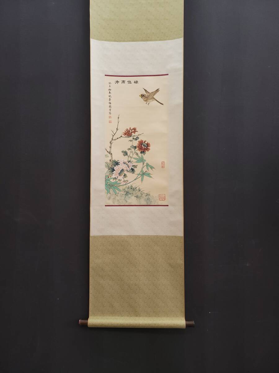 - 中国書画 掛け軸 中国・近時代 梅蘭芳書「禄位高升図立軸」紙本立軸 書道巻物 真筆逸品 肉筆保証 唐物 古画 LOT-02202