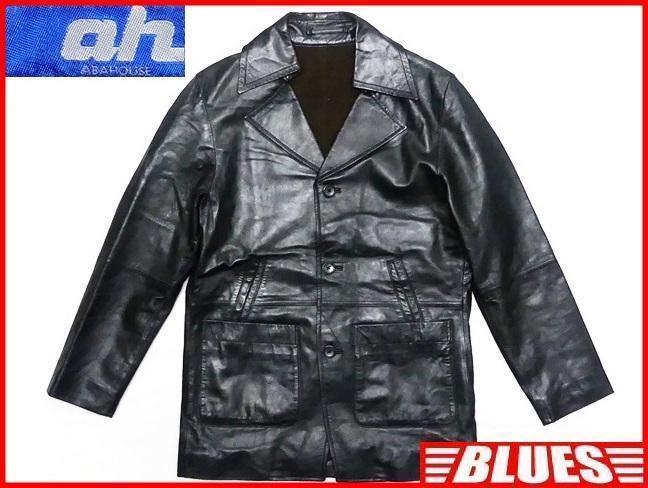- 即決★ABAHOUSE★メンズM レザーテーラードジャケット アバハウス 2 黒 ブラック 本革 スーツ 本皮 ビジネス 革ジャン 背広 コート
