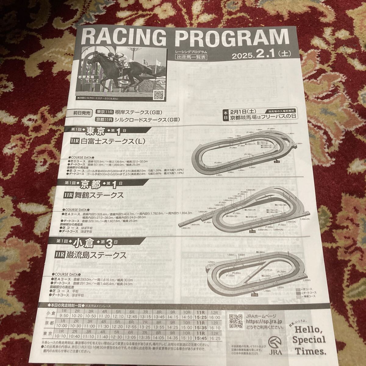 - JRAレーシングプログラム2025.2.1(土)白富士ステークス(L)、舞鶴ステークス、巌流島ステークス