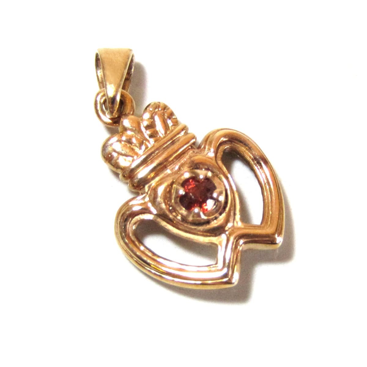 - 1.5g agete アガタ K10 Garnet Claddagh クラダ ペンダントトップ ゴールド 金 ガーネット ネックレス ゴールド