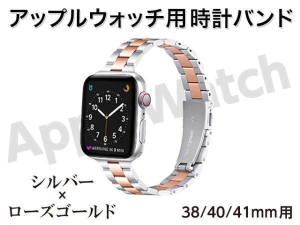 > 新品 Apple watch バンド 時計ベルト ステンレス 38mm / 40mm / 41mm 用 14mm幅 シルバー × ローズゴールド [3506:madi]