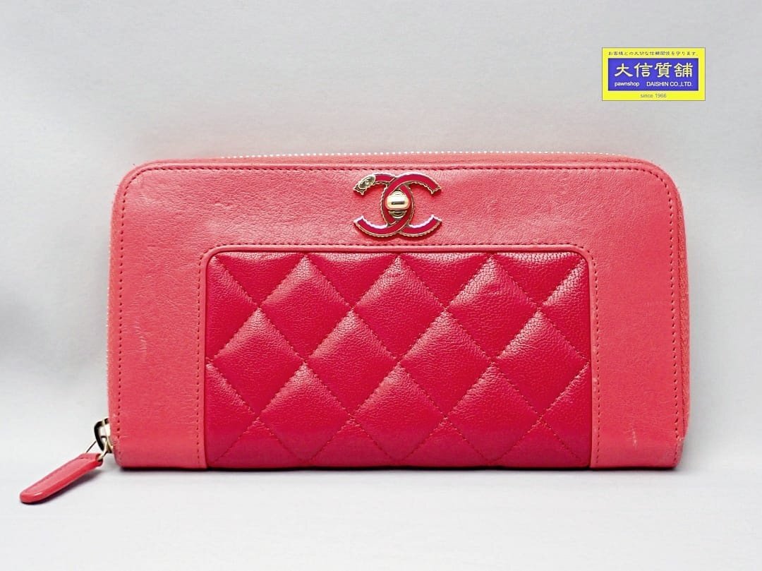 - CHANEL シャネル ココ マドモアゼルヴィンテージ 長財布 A80969 ラウンドファスナー レッドxピンク 中古B+ 【送料無料】 A-8775
