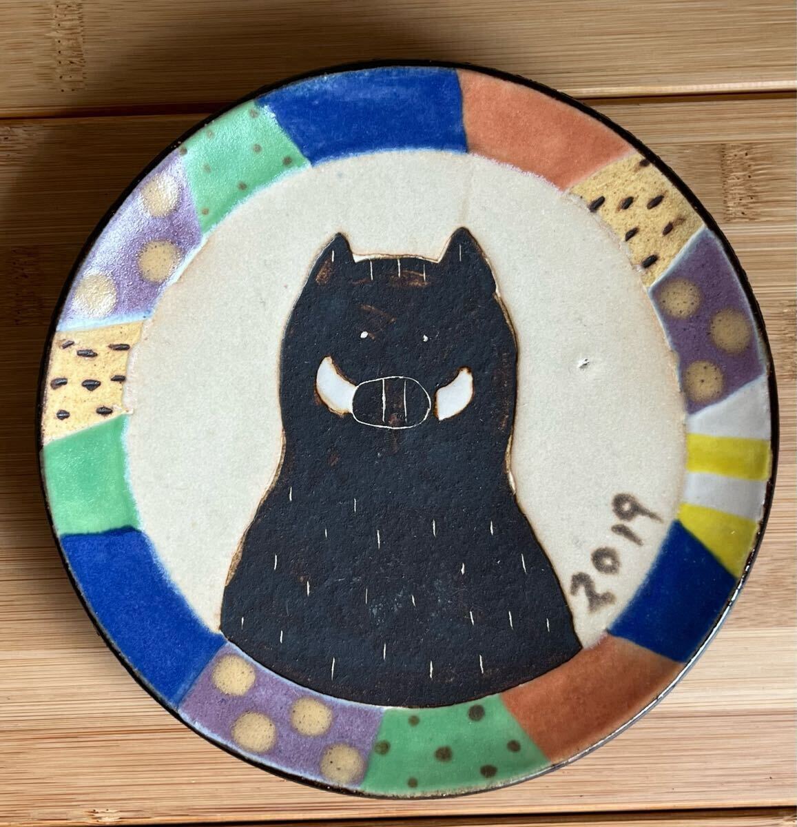 - 【未使用品】 小林美風 中皿 いのしし イヤープレート 2019 ミィコ・ポンポン やちむん 和食器 イノシシ 猪