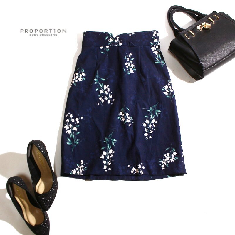 > 美品 プロポーションボディドレッシング PROPORTION BODY DRESSING 春 夏 オフィス 花柄 清楚 タイトスカート M 3 ネイビー 紺 お嬢様 通勤