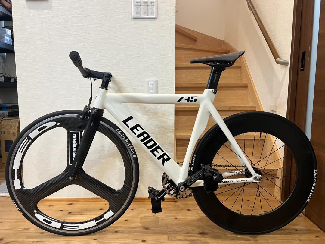 > フルカスタム リーダーバイク LEADER 735 ピストバイク ホワイト カーボンホイール AARN MJS SRAM オムニウム