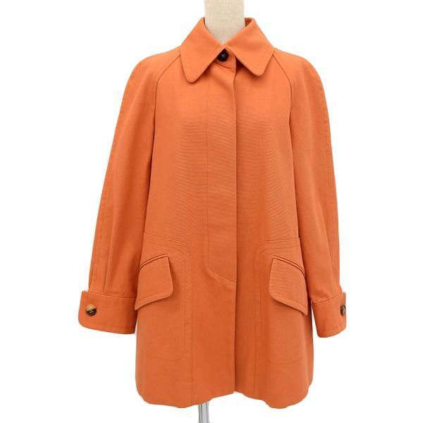 > HERMES エルメス バックZIP Aライン キャンバス地 コート アウター レディース コットン オレンジ 40 ヴィンテージ