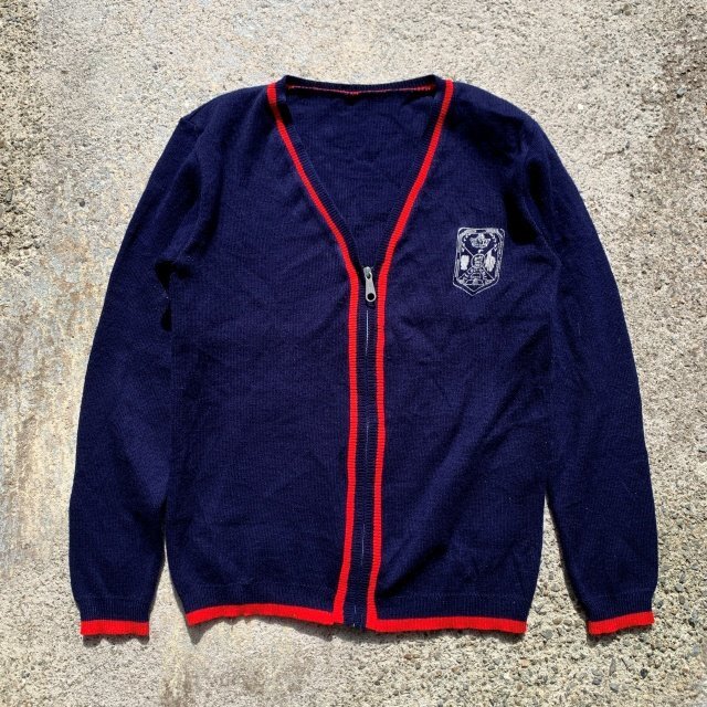> 【S or Ladies】SALE!! UNKNOWN ジップアップ カーディガン スクールセーター ネイビー■ビンテージ オールド アメリカ古着 ニット