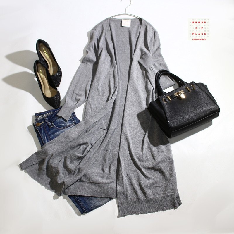 - 美品 SENSE OF PLACE センスオブプレイス 春 夏 ミックス サマーニット ロングカーディガン F グレー ロングニットカーディガン レーヨン
