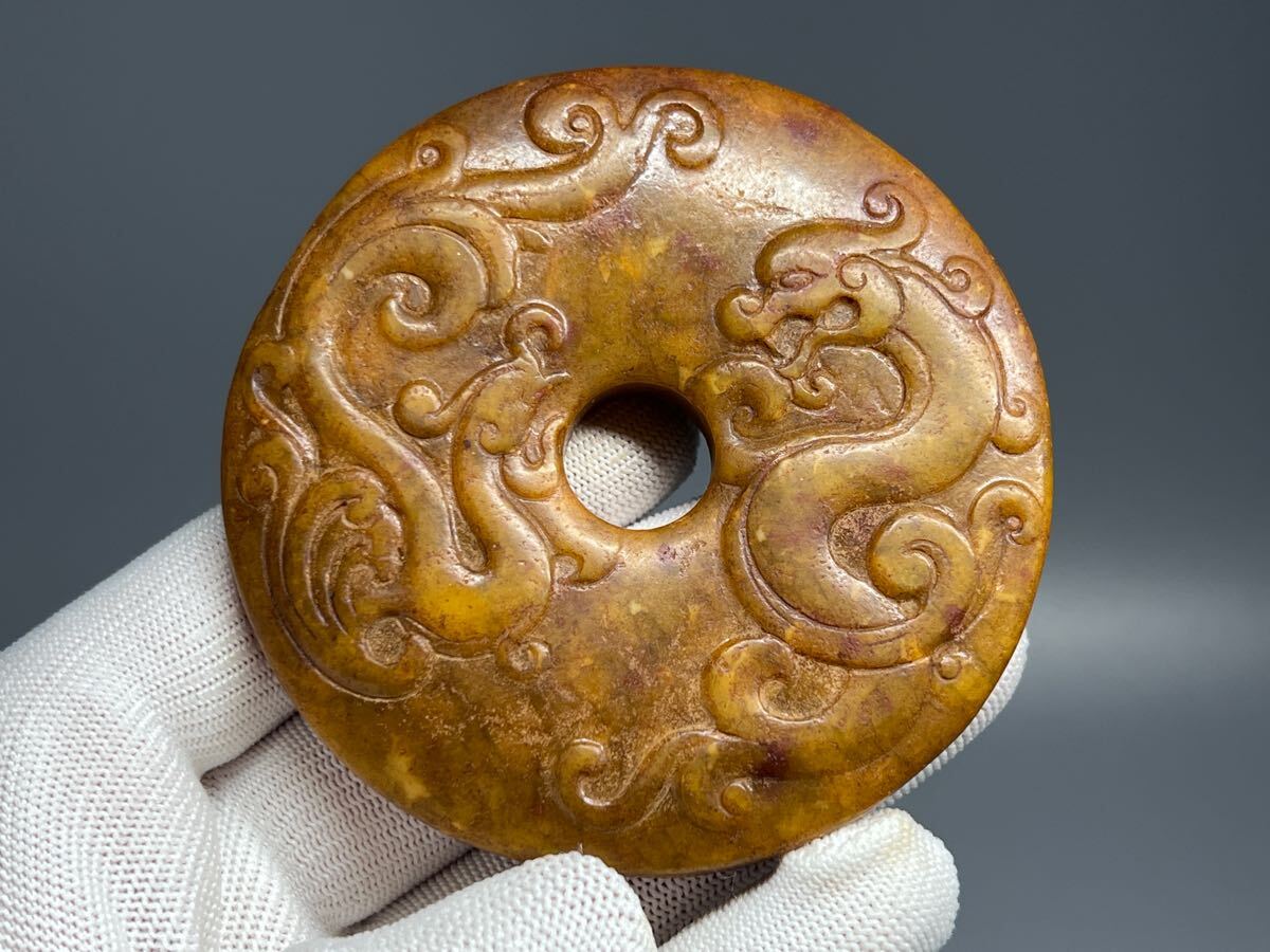 - 古美術 玉璧 円形 竜鳳紋 厚重 文鎮 浮き彫り 美品 旧蔵 唐物 置物