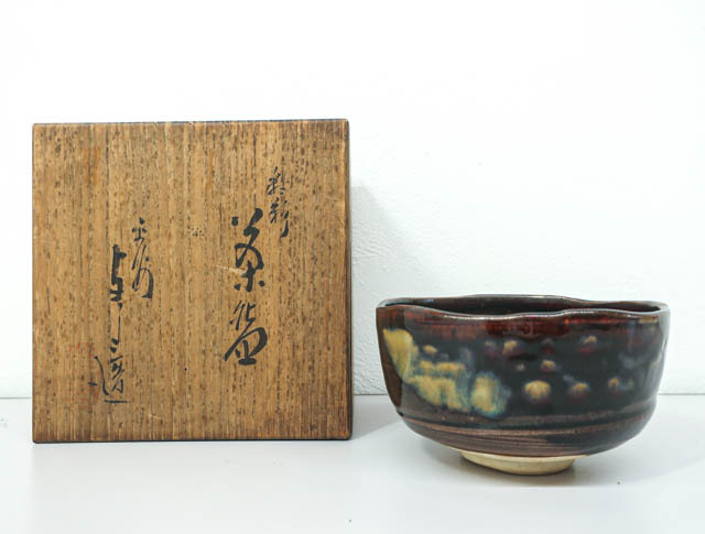 - 《古美術京松》【茶道具】 清水焼 浅見与し三作 彩釉茶碗 共箱入り R6D-13
