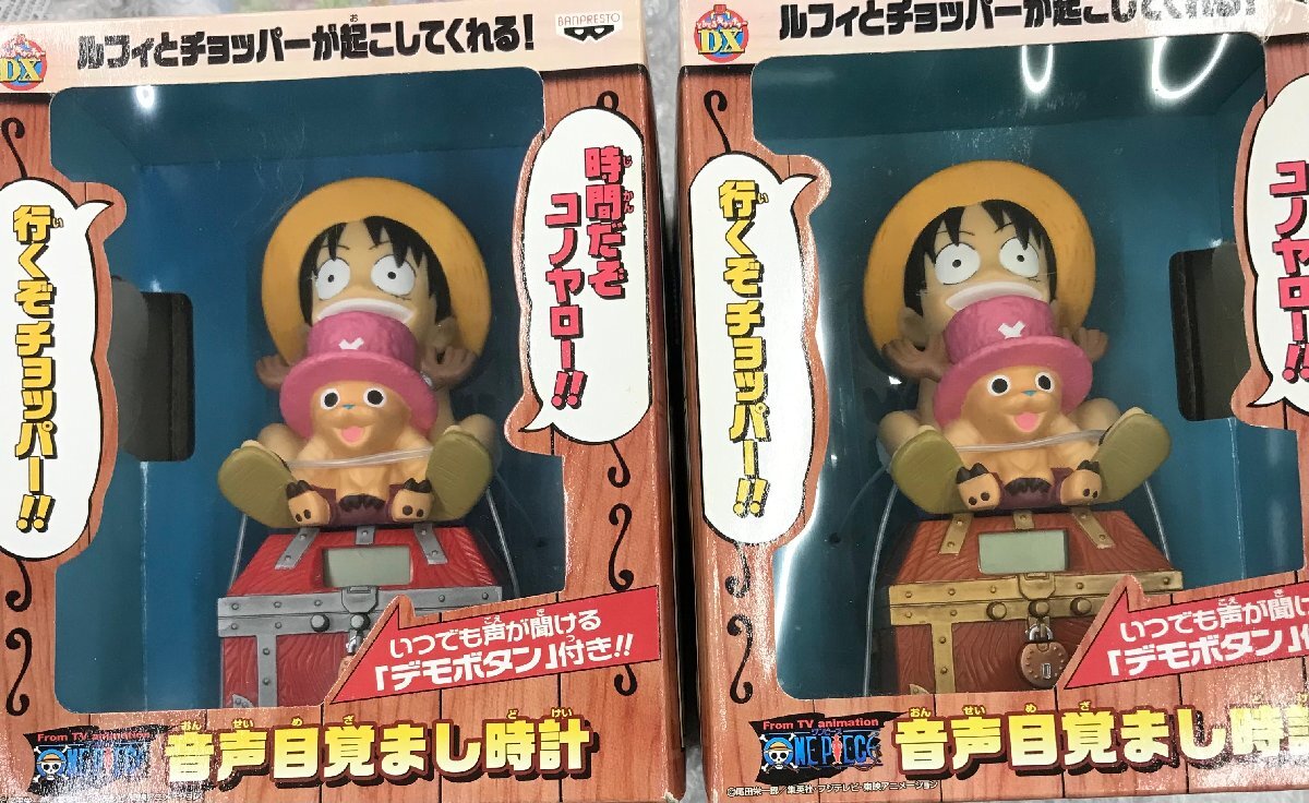 ★未開封当時物 ONE PIECE 音声目覚まし時計 ルフィ チョッパー等 全2種 フィギュア ワンピース グッズ SF59※外箱経年傷み、側面穴、テープ劣化、汚れの付着有。※全て未開封品につき開封しての動作、状態確認は行っておりません。※本商品は長期保管品に付き他記載のない経年ダメージ、不備が有る可能性がございます、予めご了承下さいませ。※上記を全てご理解いただける方のみご入札お願い致します。