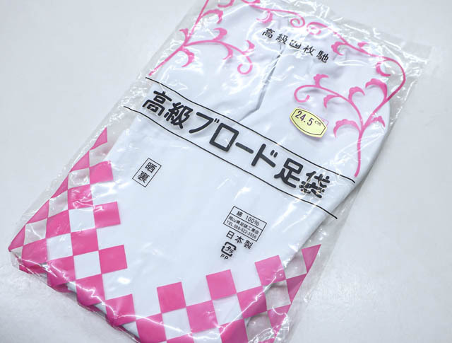 - 《古美術京松》【着物】 和装小物 高級ブロード足袋 未使用品 4枚コハゼ 晒裏 24.5cm R6W-344