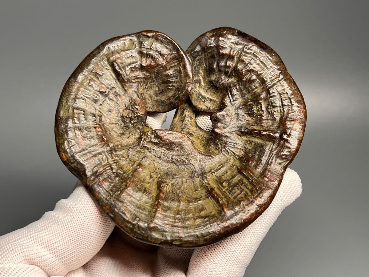 - 古銅 置物 厚重 霊芝 中国古美術 金属工芸 細工 コレクション 唐物