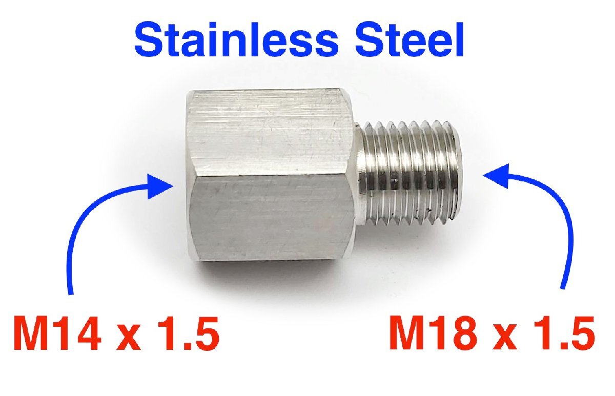 > ステンレス センサー アダプター オス-メス変換コネクター メスM14P1.5ー オスM18P1.5 HEX 22