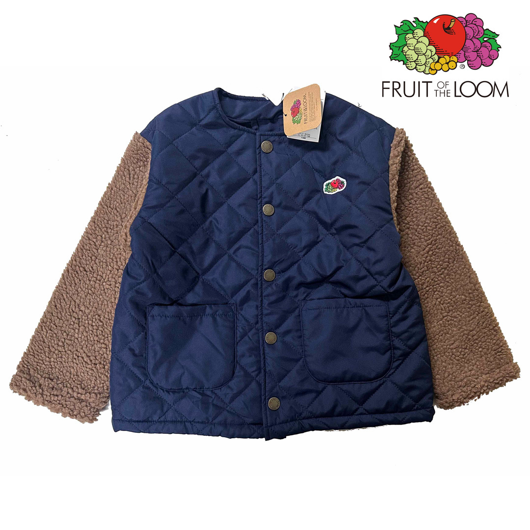 - 新品 120 ★ Fruit of the Loom フルーツオブザルーム 中綿 キルティング ボア ジャケット ネイビー ガールズ ボーイズ ジュニア 襟なし