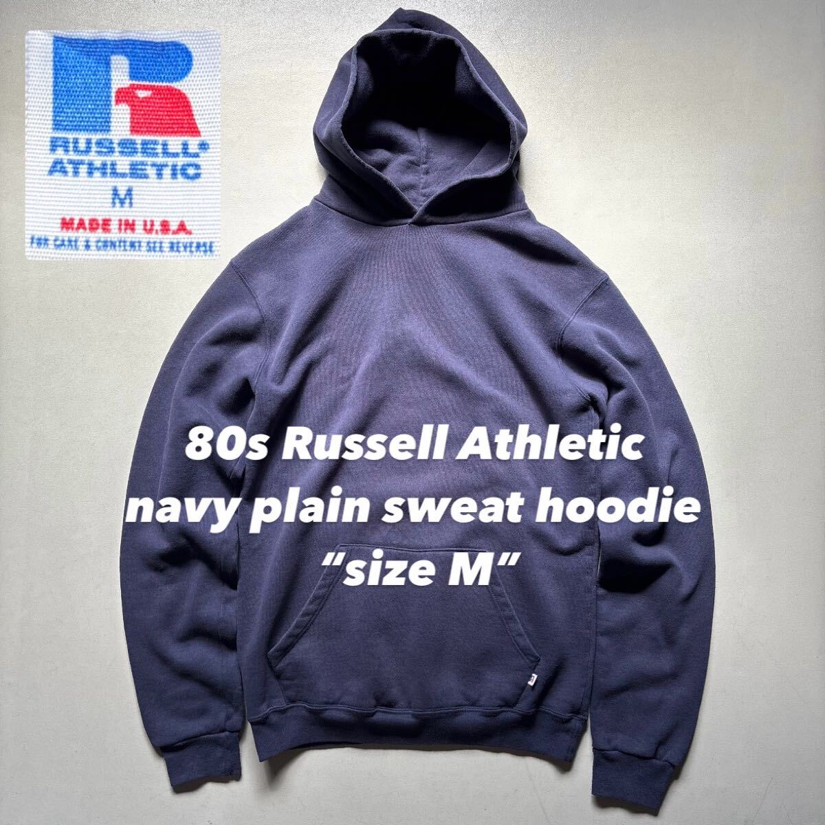 - 80s Russell navy plain sweat hoodie “size M” 80年代 ラッセル スウェットフーディー 紺 ネイビー 無地 パーカー スウェットパーカー