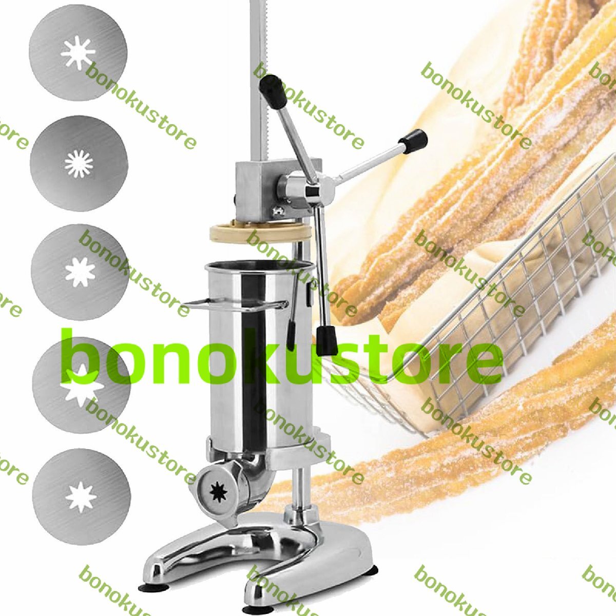 > チュロスメーカー 手動スペインラテンフルーツドーナツ充填機、ステンレス製ドーナツ充填機、ノズル 5個付き、業務用または家庭用 3L
