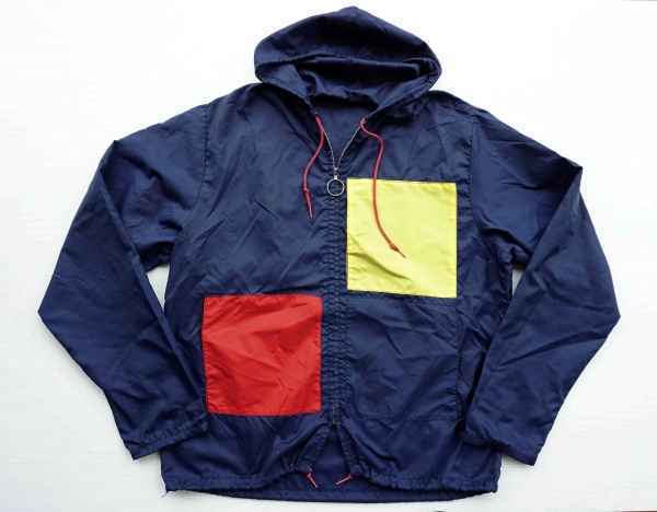 - ◆ 70's USA製 KING JACK フード付き ナイロンジャケット L 紺 ネイビー モンドリアン/ビンテージ オールド アメリカ古着 レトロ