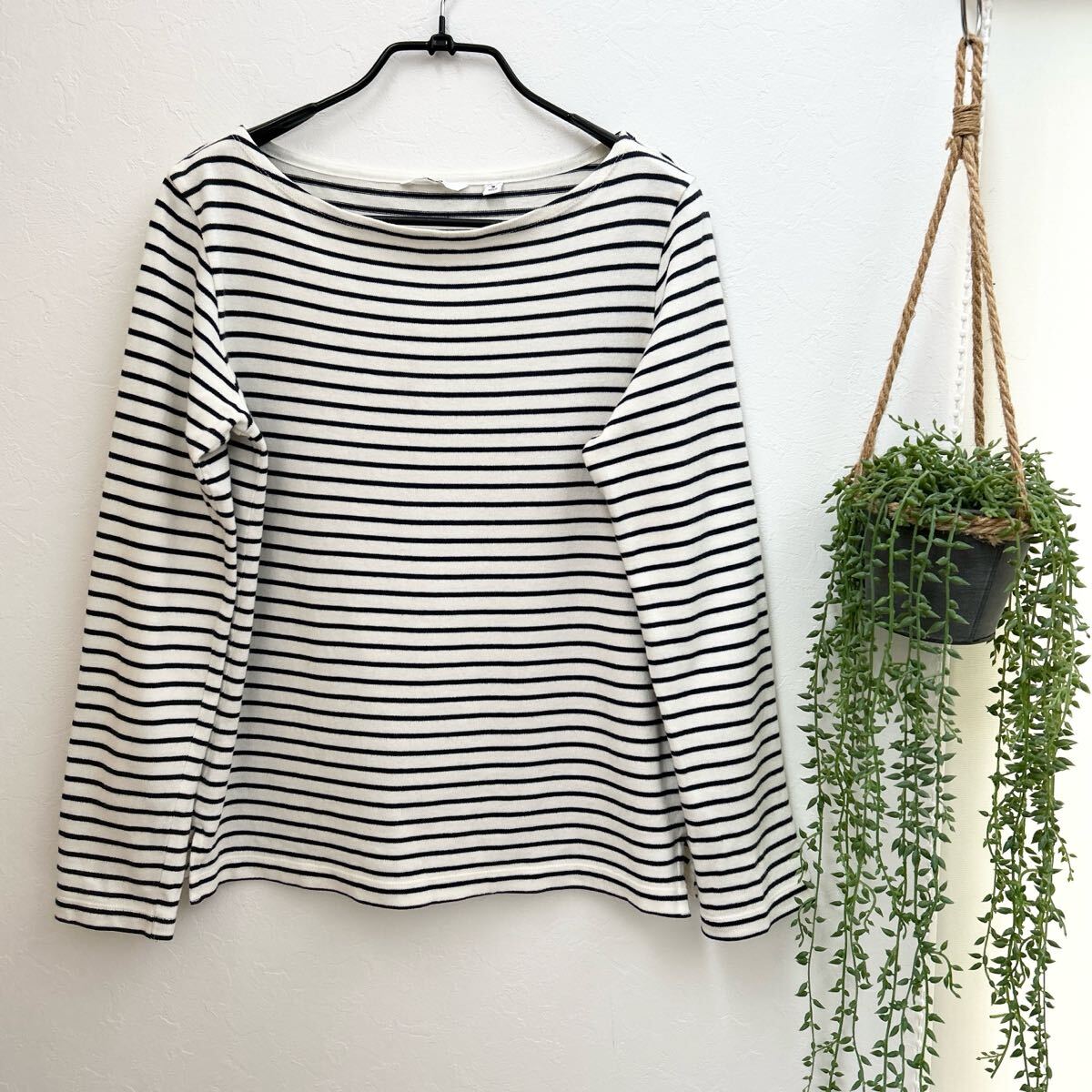 - ユニクロ 白黒ストライプ ボートネック長袖トップス