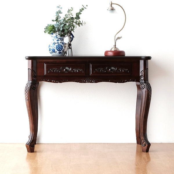 > デスク 机 アンティーク調 木製 スリム 薄型 パソコンデスク PCデスク アンティークなコンソールデスク 送料無料(一部地域除く) diz3235